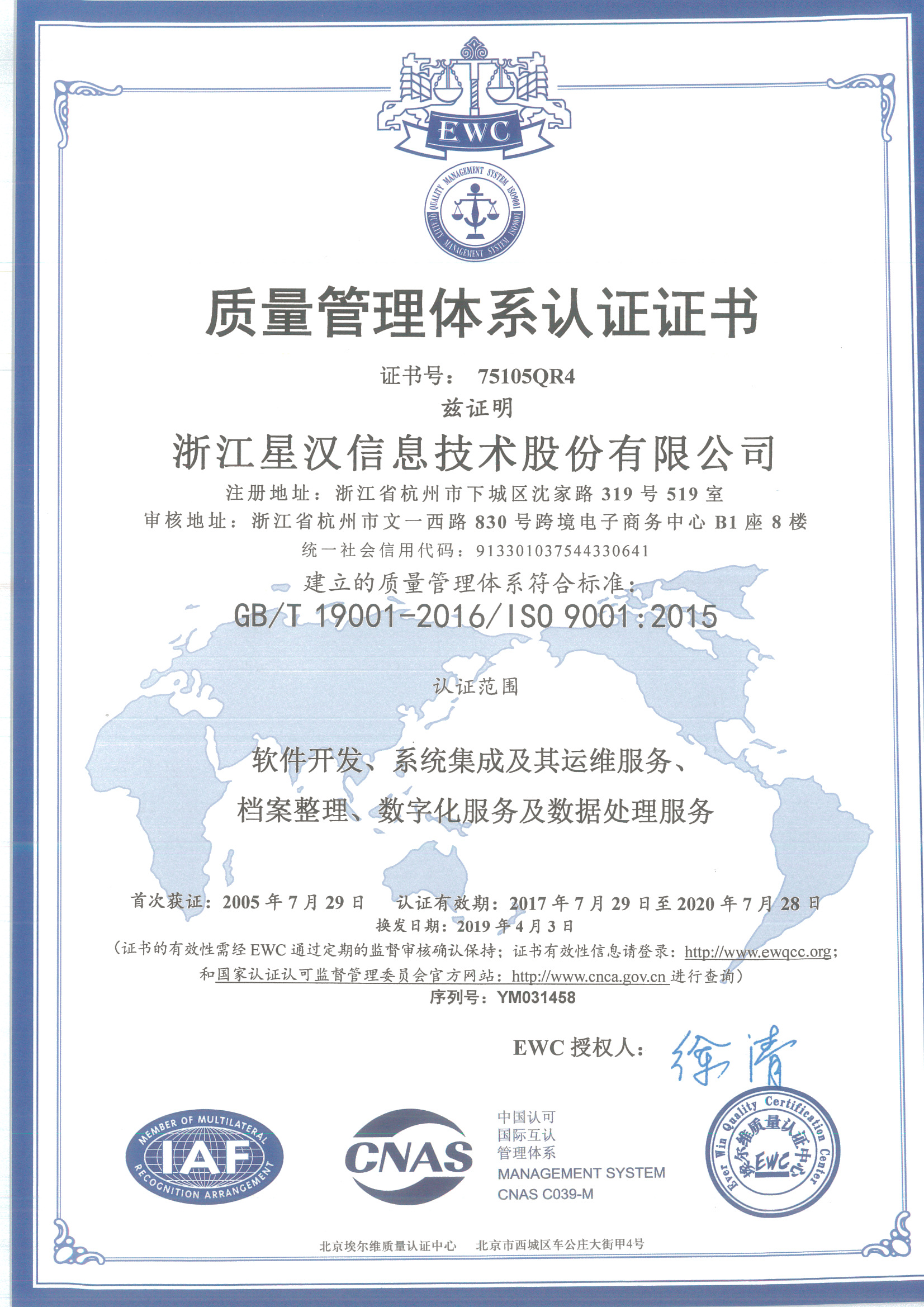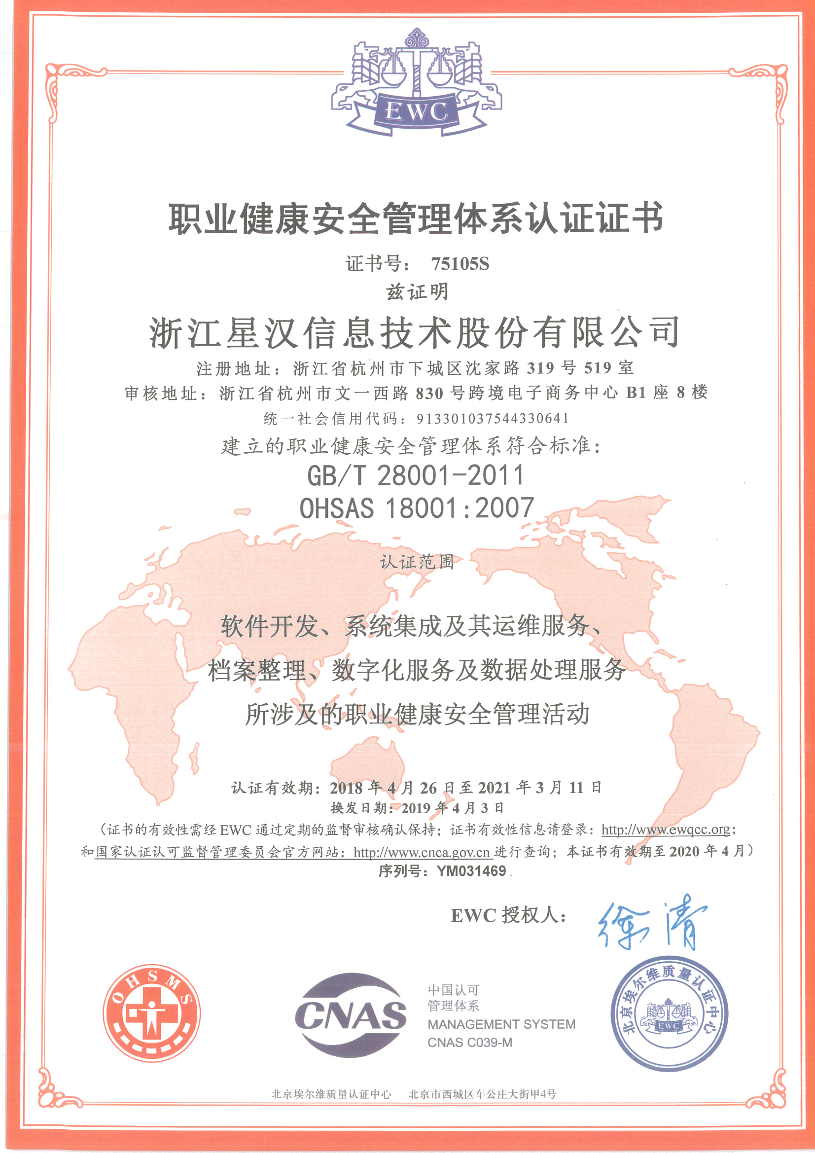 星漢信息是國家高新技術企業、省級專精特新企業、浙江省檔案數智重點企業研究院、省級高新技術企業研發中心、省級信用管理示范企業、省級產業數字化服務商、省級軟件核心競爭力企業、入選國內軟件產品首版次,擁有包括CMMI5、國產化信息系統集成與服務、信息系統集成與服務、電子與智能化工程專業承包、信息安全服務、安防、DCMM、ITSS等全產業鏈的業務資質證書;并通過了ISO27001(信息安全管理體系)、ISO20000(信息技術服務管理體系)、ISO14001(環境管理體系)、ISO9001(質量管理體系)和ISO45001(職業健康安全管理體系)等多項國際體系認證。